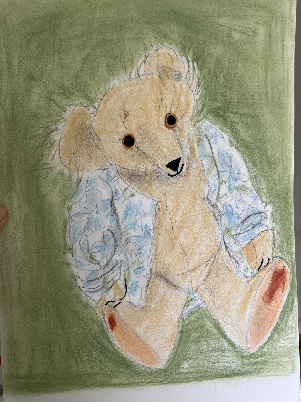 For me, these old bears were full of love. With so many hugs and so much confidence, they became alive. After drawing the child, I couldn’t help but draw the bear too.